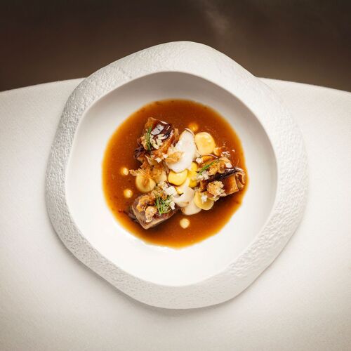 A contemporary restaurant that stands out for its open-view kitchen and striking wine cellar, with more than 1200 references. The cuisine of Miguel Ángel Mayor, a Barcelona-born chef with Andalucian roots, is centred around two surprise tasting menus (Recuerdos and Influencias) that aim to add a modern perspective to typical Málaga dishes, with a nod to his childhood, while at the same time retaining the full essence of their flavour.