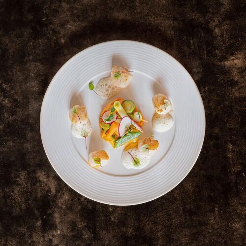 Duck pâté en croûte with foie gras, calf's head with ravigote, pavlova with bilberries: this tasty and hearty traditional cuisine is served in a family atmosphere and – in summer – on the lovely panoramic terrace, with a view of the Chablais mountains.