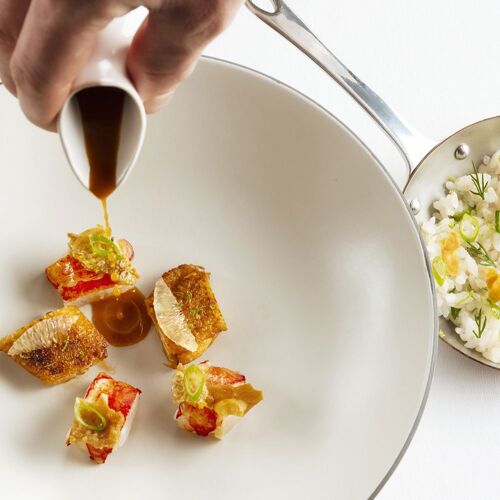 "95% of the produce we cook comes from farms less than 70km away. The fish are sustainably fished in the Mediterranean, the lamb and poultry come from nearby farms within a radius of 50km and the organic fruit and vegetables are grown in the Drôme."