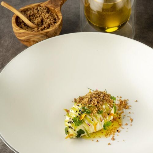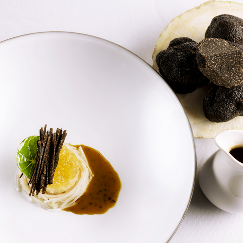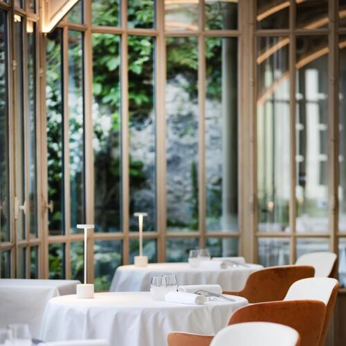 Nestling at the foot of a château that is famous for having welcomed Madame de Sévigné as a regular patron, this restaurant is the perfect embodiment of Provence's twin traditions of hospitality and good food: olive oil from Nyons, guinea fowl and diced vegetables from the Drôme are judiciously showcased by chef Benjamin Reilhes in the form of three tasting menus comprising several courses. One of the set menus draws entirely on plants. This restaurant is an ode to the Mediterranean's fine ingredients and Rhône Valley wines. Pastry chef Cédric Perret, meanwhile, creates desserts in harmony with the seasons, often setting them off with an original and striking flourish.