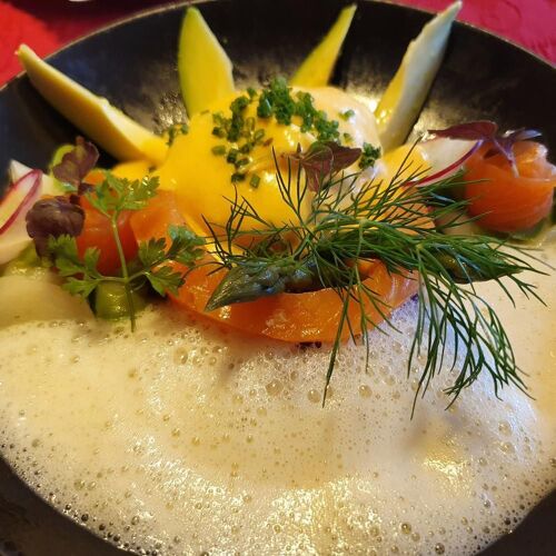 This mountain hotel and restaurant, which has been around for well over 100 years, has various comfortable rustic-style rooms, in which guests tuck into regional cuisine with a contemporary twist, crafted by chef-patron Jakob Brasch. The menu features a bouillabaisse-inspired fish soup, a wonderful beef broth with Flädle (pancake strips) or a classic Tafelspitz (prime boiled beef) in horseradish sauce. In the evening there is also a more ambitious five-course set menu; a selection of traditional snacks is available throughout the day. Tip: Ask for table 15 by the tiled stove. Given the location in the Pfaffenberg area, at 700m above sea level, the terrace comes into its own in summer, affording views across the region. Well-kept guestrooms.