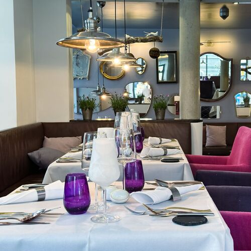 Part of the Adara hotel, this is an elegant little restaurant with a modern and inviting interior – the eye-catching decor includes numerous mirrors on the wall.The management is cordial and personable: chef Julian Karr not only cooks, he is also involved in the service. His cuisine is creative and seasonal, and the quality of the ingredients is second to none. A nice example: Lake Constance pikeperch, spinach leaves, Jerusalem artichokes as foam and vegetables. Tip: The restaurant offers its own wine to accompany the set menu, which changes on a regular basis. Set in the old town, the terrace is lovely. Tip: Leave your car in P4 multi-storey car park, just a short walk away.