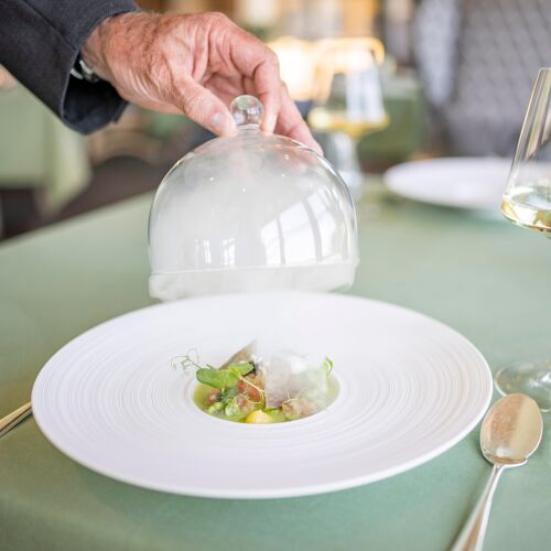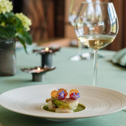 The Sonnenalp Resort, which has been run by the Fäßler family since 1919, is definitely worth a visit for anyone interested in fine dining. Silberdistel's kitchen team uses select seasonal ingredients. The "Weitblick" menu with up to seven courses is offered. Tip: Before, with or between the courses you can order caviar from Walter Grüll from Salzburg. On Fridays and Sundays there are classics. Here on the fourth floor, you are afforded wonderful views, so be sure to ask for a window seat. Having said that, the restaurant interior itself, with its blend of stylish elegance and Alpine charm, is also a sight to behold. Then there is the enthusiastic sense of hospitality, which makes itself felt throughout this traditional establishment.