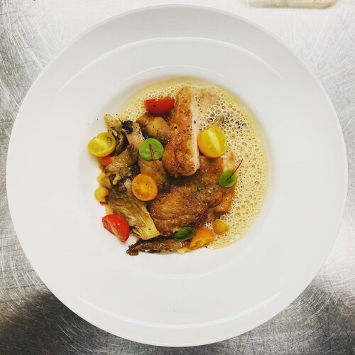 The former Café de la Préfecture is run by Japanese chef Takaya Uchida. Think upcycled furniture, jazz music, a succinct and regularly-changing menu with meticulously prepared market-fresh cuisine, and Burgundy wines at reasonable prices. The cauliflower cream with squid and chorizo made an impression, as did the fillets of Dombes duck with oyster mushrooms, aubergine and carrot purée.