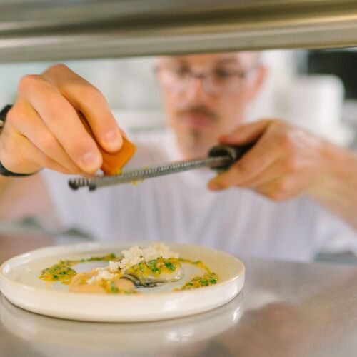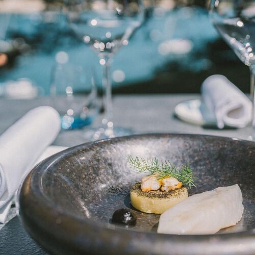 On the Odet estuary, opposite the pretty port of Bénodet, the view overlooks the sea on one side and a forest of pine and oak on the other… The magnificently located Hotel Villa Tri Men dates from the early 20C, when it was built by a Breton admiral as his home. The chef, who trained in Quimper and has worked in Brittany and Switzerland, aims above all to highlight the work of the artisans and producers of Brittany (most of whom are organic). He combines regional delicacies with spices from afar and fresh herbs on a constant quest to exalt the flavour. His langoustine ravioles and shellfish stock are out of this world!