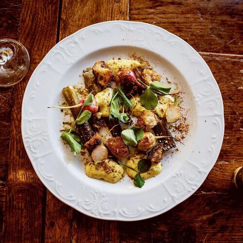 Smack in the center of Ojai, The Dutchess reigns from its perch inside a charming 1920s building. It may be the queen of cool, but prim and proper it's not. Instead, this quirky concept features a bakery/cafe by day and a trendy Burmese restaurant by night. Come hungry, as this heartfelt menu is brimming with snacks, salads, curries and large plates designed for sharing. Begin with a tea leaf salad, piled high with slightly bitter tea leaves balanced by napa cabbage and sungold tomatoes with crispy-crunchy peanuts, fried garlic and shallots. Chickpea tofu is perfectly golden-brown and sided by a sweet and sour tamarind sauce. The contemporary, rustic dishes are bested by the skillfully prepared desserts, like a decadent chocolate-caramel ganache tart.