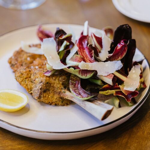 The industrial-chic décor features high ceilings, arches and soft leather chairs. Whether you pop in for snacks and cocktails at the bar or plan on savoring a full meal, service is always friendly and quick.