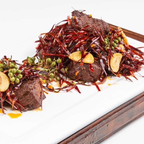 The shopping block exterior off Rosemead Boulevard might be unremarkable, but the expansive interior, splashed with red, gold and blue, is as comfortable as it is eye-catching. The culinary offerings are no less opulent, deriving from royal Manchu cuisine, first established in the imperial courts of the Qing dynasty, and boasting no shortage of luxury ingredients. The menu has a plentitude of options, but you’re likely to see many neighboring tables enjoying a signature lightly battered shrimp, fried together with their tender shells to an airy crispness, and diced black pepper Angus beef is similarly popular (and indulgent). Perhaps the wisest course is to come with a large group, the better to sample as many of the enticing dishes as possible.