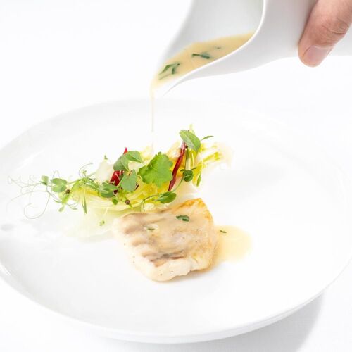 The large picture windows at this restaurant offer fine views of the Tyrrhenian sea, where the blue of the sea blends with the elegance of the dining room. The view of the bay is truly spectacular, providing the perfect backdrop for a dining experience that is both traditional and innovative. The chef here serves classic dishes alongside Italian specialities reinterpreted with a modern twist, surprising guests with combinations that are bold yet always balanced. A good example is his elegant lemon tartlet served with a caper and pepper powder.