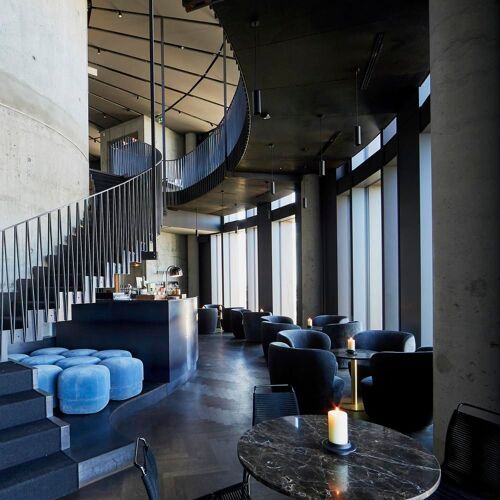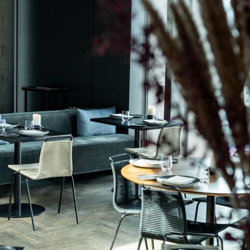 The highest restaurant in the city is located on floors 9 and 10 of the striking Axel Towers building, making it an ideal place to enjoy a cocktail while taking in the view. The menu – available in either a tasting or à la carte format – brings together a range of global influences, from Japanese (yuzu kosho) to South American (hamachi ceviche), with fabulous results. The wine pairings are particularly well-chosen.