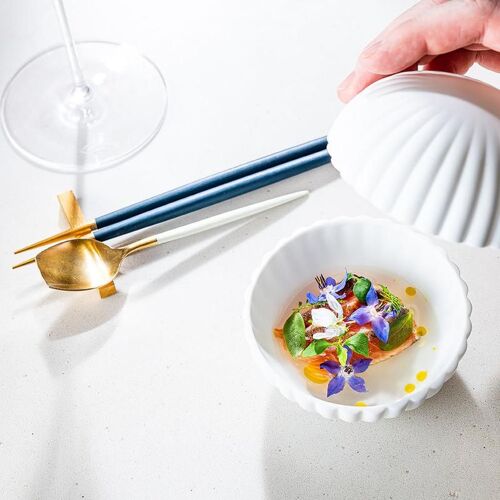 Chef Ryan Ratino's ambitious counter is an experience like nothing else in the city. Sitting just above Bresca, the room is a constant hive of activity with sharp-suited servers gliding about and laser-focused chefs working in perfect tandem. From the cutlery to the cooking, expect beauty and boldness. Top-rate seafood and meat from Japan and beautiful sauces form the core of this menu. Think delicate tarts with wagyu tartare, grilled sawara with beet and pomegranate sauce, and a particularly striking king crab rice cooked in a donabe. Dessert is its own counter that ends with a treasure box of mignardises. All throughout, a high-energy playlist matches a high-performing team who want nothing more than for guests to enjoy themselves.