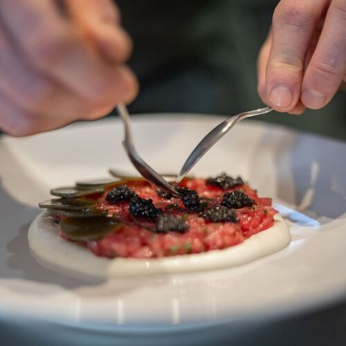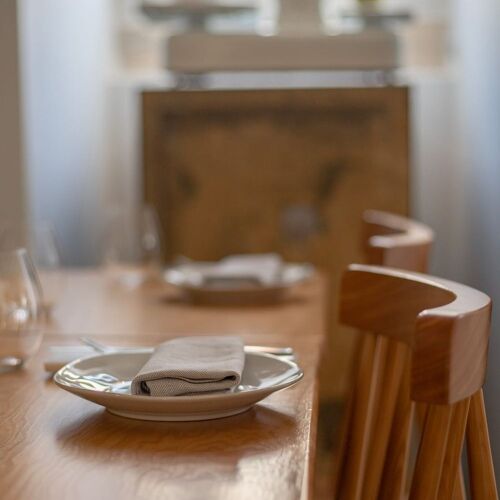 Located in the historic heart of Estremoz, also known as the “white city” because of its fascinating marbles, this restaurant offers a cosy and intimate ambience, where warm, pure colours create a welcoming atmosphere. From the dining room, it is possible to observe the kitchen in action and see the dishes being crafted, presented in a menu based on sharing plates and two tasting menus (6 and 8 courses). The cuisine on offer ranges from signature dishes and comfort food prepared in a traditional wood oven, with options that change daily.
