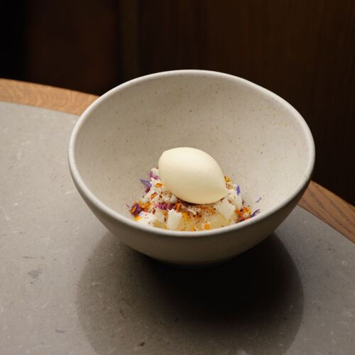 Located in an old textile warehouse, this restaurant from former L’Enclume Executive Chef Tom Barnes gives a nod to Manchester’s industrial heritage with its exposed brickwork and girders. The cooking skilfully blends measured international flavours with those from the restaurant’s doorstep; for dessert, you’re just as likely to get amakase sorbet as you are Manchester honey ice cream. The meal ends with a scoop of “Barney’s Tiramisu”, touchingly inspired by Tom’s late father. A relaxed atmosphere is encouraged, with the chef’s hand-picked playlist and the chattering diners combining for a brilliant buzz.