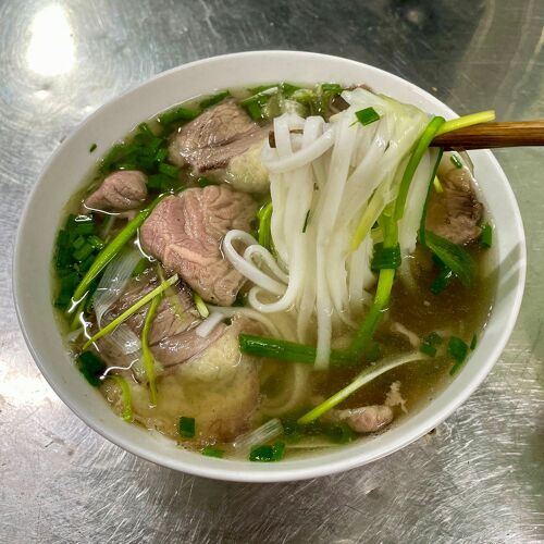 Early risers delight in this beef phở haven, open from 5:30am until mid‐morning, when beef cuts and broth are sold out. Fresh ingredients shine in the signature beef heel muscle, which boasts tender meat and gelatinous tendon with a pleasant chew. Order phở with eggs and fried dough, just like the locals.