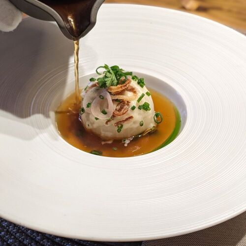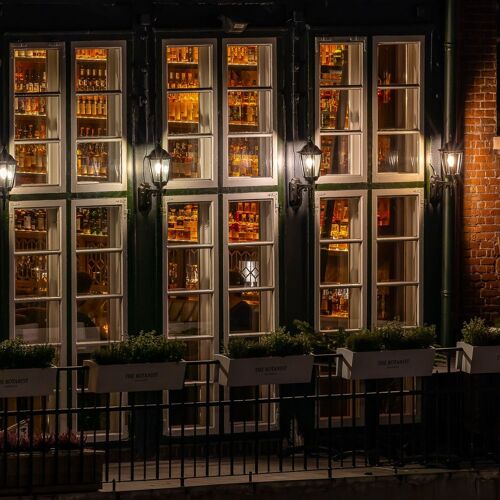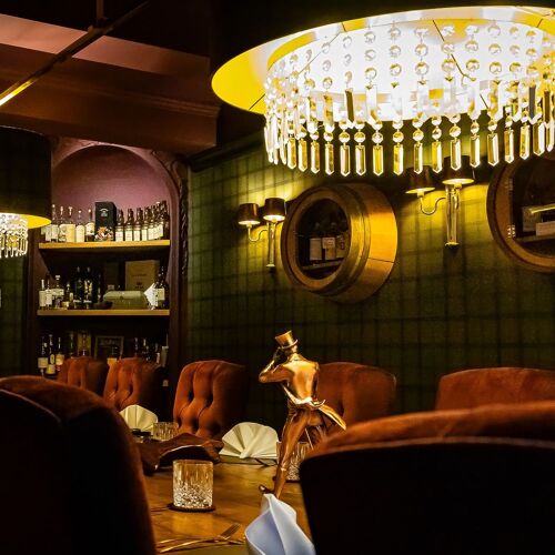 By the Nikolaifleet canal, one of the oldest buildings in Hamburg, which is located in the city's oldest street, is home to this appealing bar-cum-restaurant. Spanning a few floors, the space capitalises on the historical charm of the original structure (1697): Crystal chandeliers, wooden beams and modern furnishings as well as shelves lined with decorative bottles all come together to create a genuinely warm ambiance. The kitchen serves its modern take on classic cuisine as a sophisticated set menu or à la carte. Highlights include scallop with barley, salt marsh herbs, apple, seaweed caviar and beurre blanc, or flat iron steak with pumpkin seed dumplings, kalette, mushrooms, apple and cheese. Given the restaurant's name, it might come as no surprise that the extensive selection of spirits includes around 1 100 whiskies.