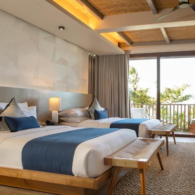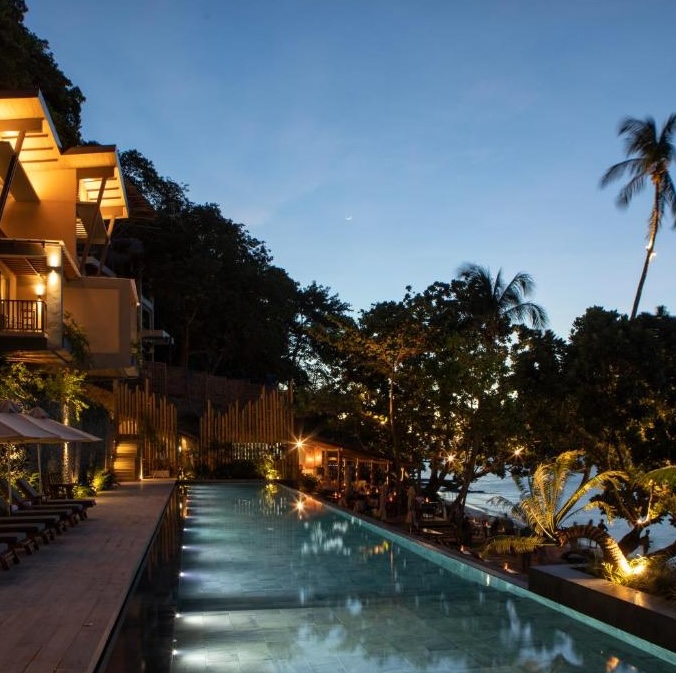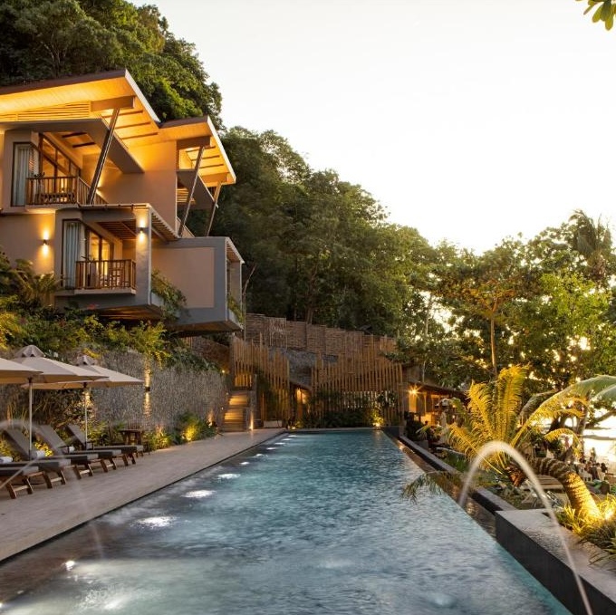 Half hidden in the verdant forest of Palawan’s lush coastline, Maremegmeg Beach Club has an idyllic spot right on Maremegmeg Beach. All rooms look across the ocean and come with balconies for enjoying the sunset views, which can also be seen from around the 35m infinity pool. The beach bar is another great spot for kicking off the evening with a tropical cocktail in hand, and Maremegmeg Beach Club Restaurant serves up a mix of Filipino and international dishes any time of day. There’s also the option of heading into town for dinner, as El Nido’s center is just a 20-minute drive away.