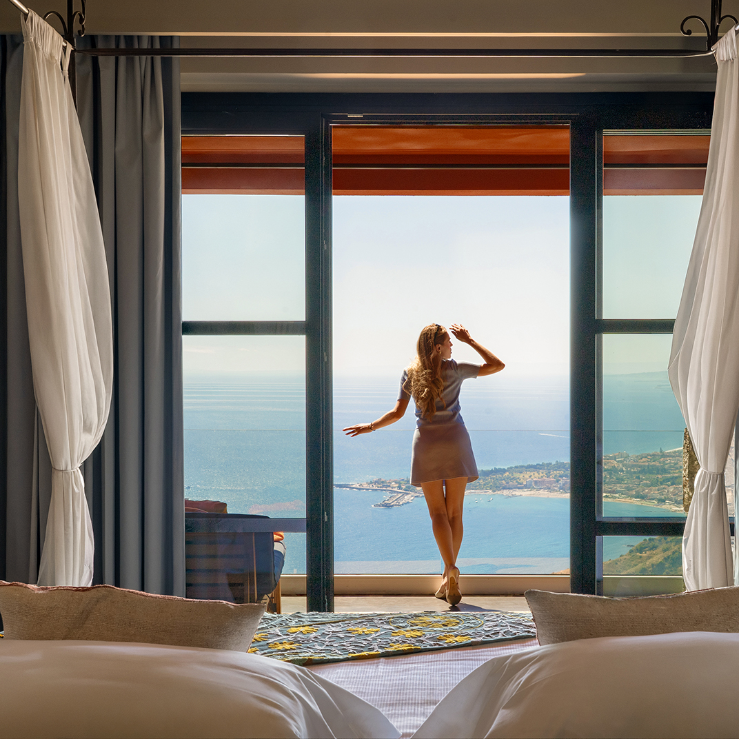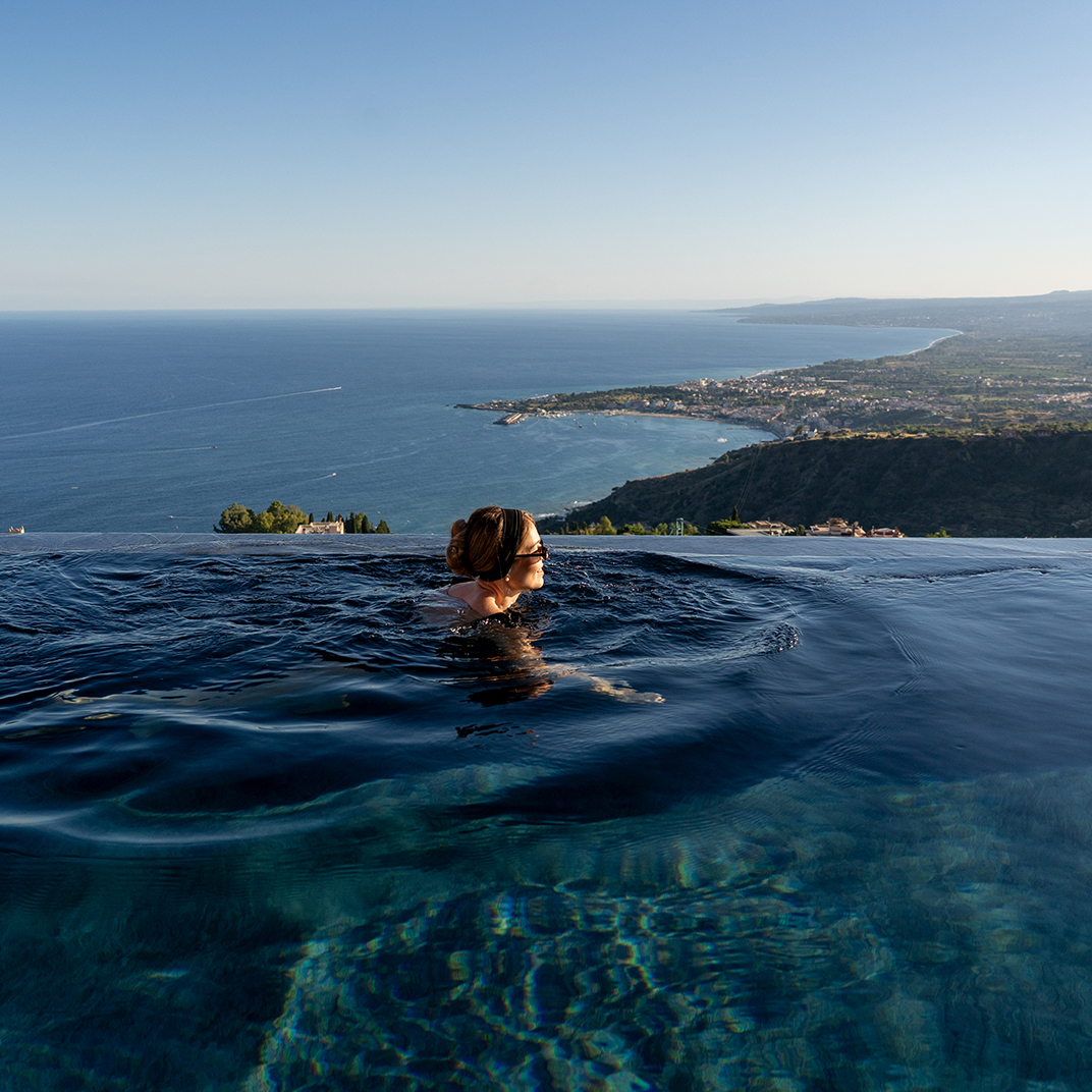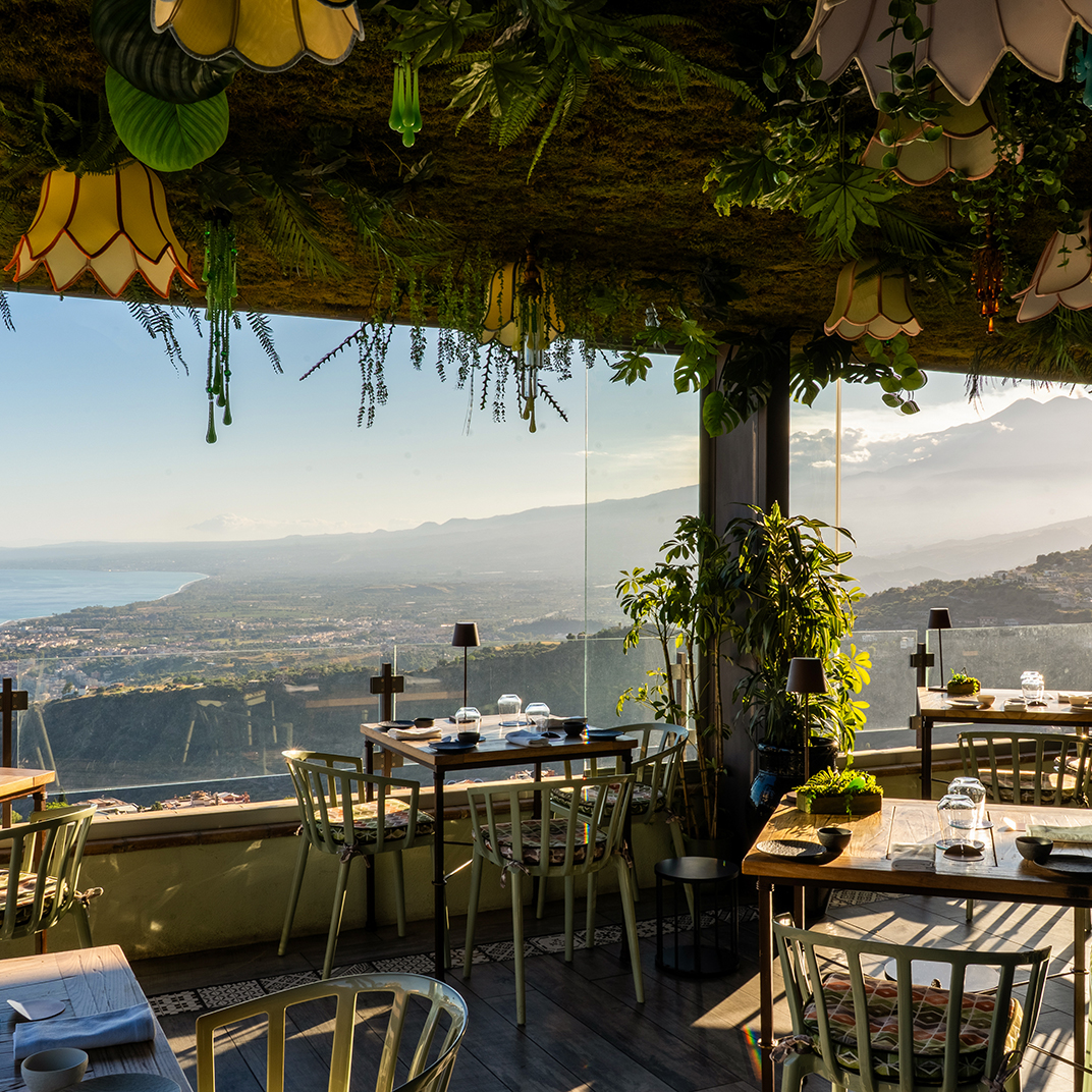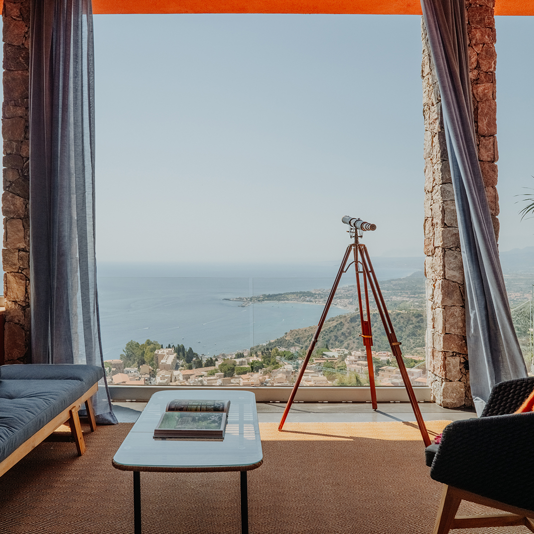 Set high in the hills above Taormina, Hotel Villa Ducale might be best known for the views from its terrace, which encompass the whole of Mount Etna and the expanse of the Ionian Sea. The interiors are rich and vibrant, the rooms decked out in saturated colors and artful compositions; many feature frankly astonishing views. The town can be reached via a long staircase or a short shuttle ride; it’s worth being back in time for an aperitivo with a view followed by an al fresco dinner, featuring simple and traditional Sicilian flavors presented in an extremely refined manner.