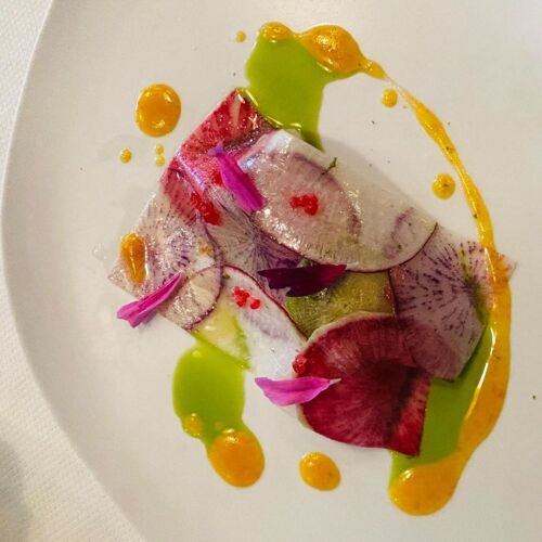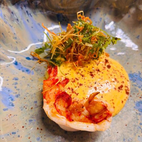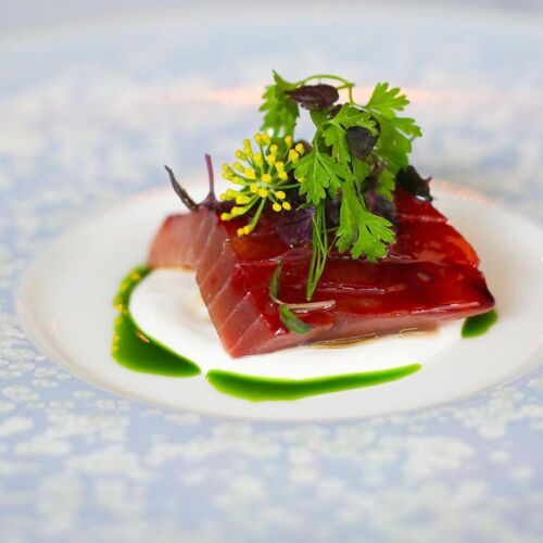 In this cosy, welcoming room adorned in soft shades, the menu rolls out a lineup of premium ingredients that depend on the whim of chef Yoshi Nagato (Maison Rostang, Le Cinq, Épicure) and his partner, Asuka Ishiba, in charge of desserts. Brittany lobster salad, wax beans, Piedmont hazelnuts and a dressing of lobster roe; Challans duckling lacquered in honey and Sichuan pepper; roast sweetbread and sautéed girolles… Stylish, high-precision plating and generous helpings. Fine range of organic and natural wines.
