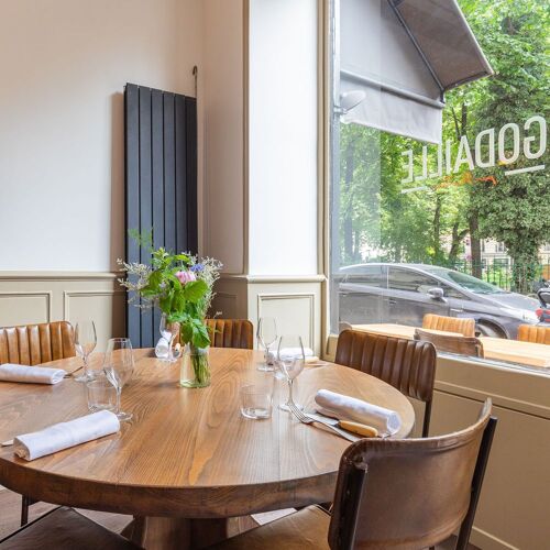 Godaille in French slang means feasting and making merry among good friends. So let's get to it and tuck into this invigorating, flavoursome cuisine! This eatery run by a group of pals gives pride of place to spices and fresh herbs, in dishes such as fried chicken with super-soft meat in a crispy golden crumb, alongside a ginger-lemon sauce; bouchot mussels are served with a coconut-green curry sauce and Thai herbs. The pleasant, slightly retro interior is complemented by a lovely bunch of fresh flowers on each table. A fine selection of natural and organic wines (including some orange wines).
