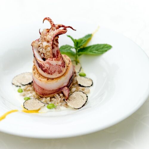 This romantic hotel-restaurant occupies an elegant stone building in a typical small Istrian village just a few kilometres from the sea. Take a seat in what was once the wine cellar or outdoors on the summer terrace, where you’ll enjoy well-crafted, creative dishes that are full of flavour and made from top-quality local, seasonal ingredients, with a choice of meat and fish dishes, as well as a 5-course vegetarian menu. In autumn, the menu is enhanced by delicacies such as truffles, mushrooms and game. Guided tastings of the restaurant’s own extra-virgin olive oil can be enjoyed in the oil boutique.