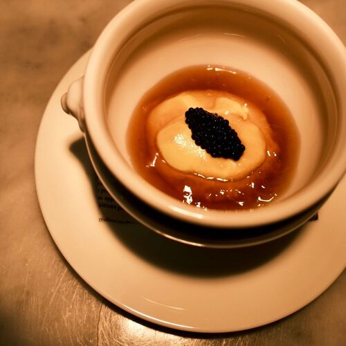 White is the keynote colour of the antiques-accented interior. The restaurant is decorated with sundries collected at flea markets, while a pendant light wreathes the establishment in its warm glow. The chef prepares traditional cuisine, arrangements stripped to the essentials so the flavours of the ingredients themselves shine clearly. Enamoured of Bincho charcoal, the chef even bakes his bread with it. The name of the restaurant means ‘white asparagus’—no need to ask what their spring speciality is…