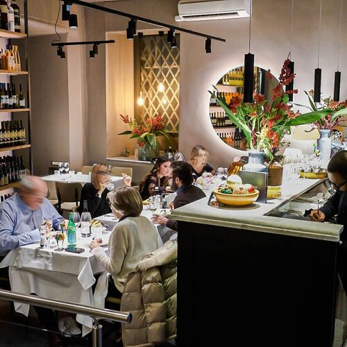 In the heart of the old town, just a short walk from the aquarium, is a venue with evening tones, but with large windows that make it welcoming even at lunchtime. During warm weather, a few tables outside allow people to enjoy the busy promenade. Although the fish for sale counter of the early days is no longer there, the sea continues to take centre stage with excellent raw materials and classic dishes, always generous in portions.