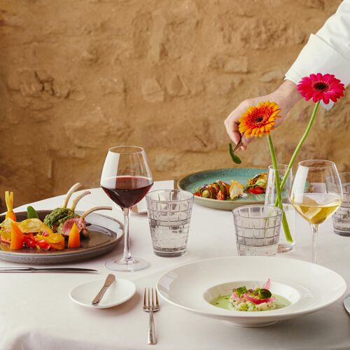 Tom Brosius is the culinary guardian of this modern, elegant hotel. He sources excellent market-fresh produce and locally grown ingredients which are assembled using modern techniques. Varied and delicious, with an appetising vegetarian menu. Comfortable guestrooms.