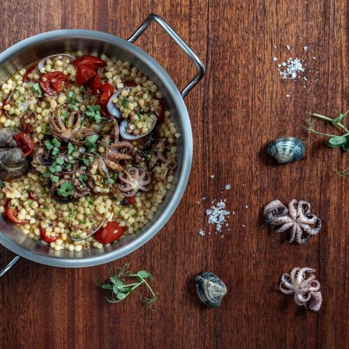 A lively venue with a youthful spirit, located on the Gzira seafront, where the main attraction is a cuisine that draws from all corners of the world. The three brothers at the helm have travelled extensively, and their menu reflects their global influences. In turn you’ll find delights from Morocco, Japan, Italy, Venezuela, and so on. The inspector enjoyed starting with lamb-stuffed pitas to be flavoured with yoghurt and harissa sauces (from Lebanon). This was followed by an eggplant stew with walnuts, paired with spiced rice and a raw vegetable tartare (from Iran). The simple dessert brought together multiple cultures: an enormous profiterole (its origin debated between France and Italy) filled with Mediterranean pistachio cream and crisp dark chocolate pearls from Belgium. The excellent value for money and informal atmosphere make it a must-visit.