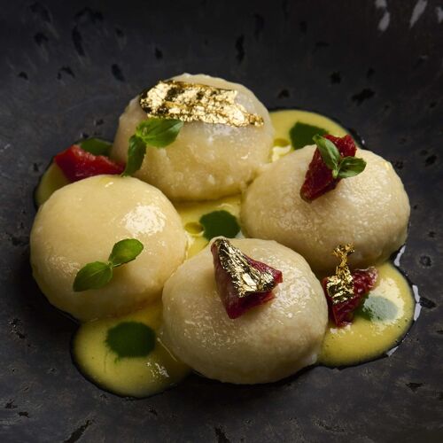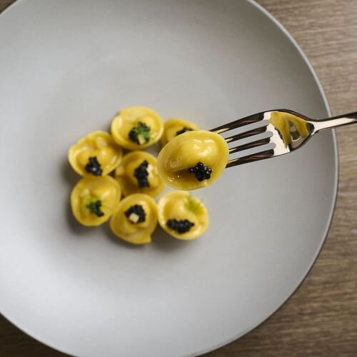 This gourmet restaurant housed in a restored period residence that once belonged to the counts of Adami is surrounded by the green maquis and hills of the Marche, with the sea visible in the distance just a few miles away. Here, the young Neapolitan chef creates cuisine that is surprising for its attractive, clean lines, providing a real explosion of flavours and a tribute to the region and the Mediterranean in general. The restaurant also owns a nearby agricultural estate which provides many of the wines and olive oils served during tastings.
