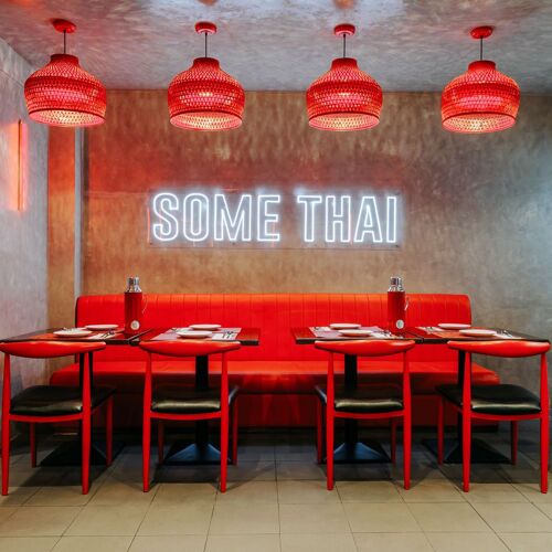Inspired by the chef's travels, this relaxed restaurant transports you to Thailand with its modern take on Thai favourites. The minimalist setting with playful table and menu designs makes for a casual vibe. Classic dishes include papaya salad, pad thai and tom yum. Curry fans can enjoy the beef short rib or crab curries. The latter uses local crab, tender eggs and a touch of coconut milk. Order the mango sticky rice for a sweet, tangy end to the meal.