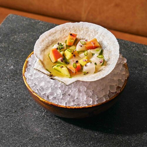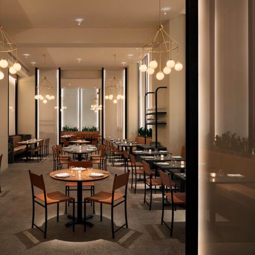 Crown Shy occupies a stunning setting in the landmark Art Deco tower, 70 Pine Street. The striking lobby leads to a modern dining room with soaring ceilings, marble floors, and expansive windows. It’s an undeniable feast for the senses; the energy made all the more palpable thanks to a long bar and an upbeat playlist. The kitchen, meanwhile, moves like clockwork with an approachably creative style. Gruyère fritters are a classic before seasonal smashes like tomatoes and peaches in a citrus vinaigrette with anchovy pieces and crushed peanuts and savory pleasures like roasted short rib with couscous, creamy ras el hanout sauce and potato espuma. Decadent sticky toffee pudding is accompanied by apple sorbet for a memorable conclusion.