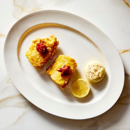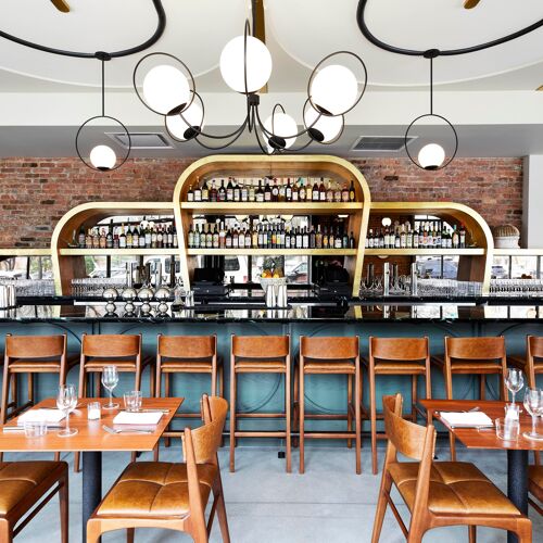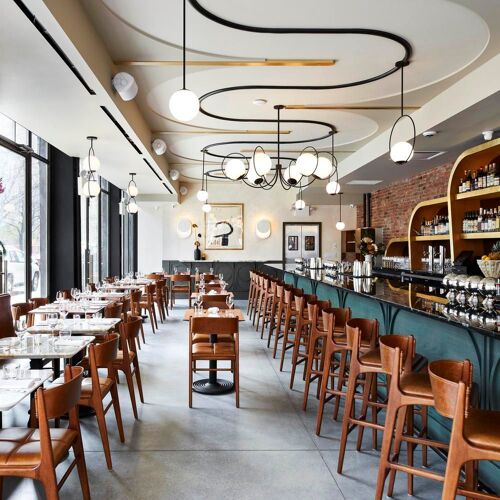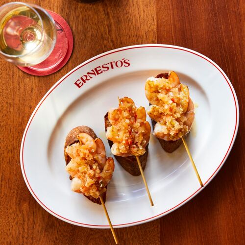 It’s all too easy to find favor in this bustling Basque getaway, located at the foot of the Brooklyn and Manhattan Bridges. Sleek coffee-brown tables, globe light fixtures dangling throughout, and a long, marble-top bar exude midcentury-modern style, while a constant crowd fosters a near electric vibe. Indeed, everything is meant to be shared, and everyone is having a good time.