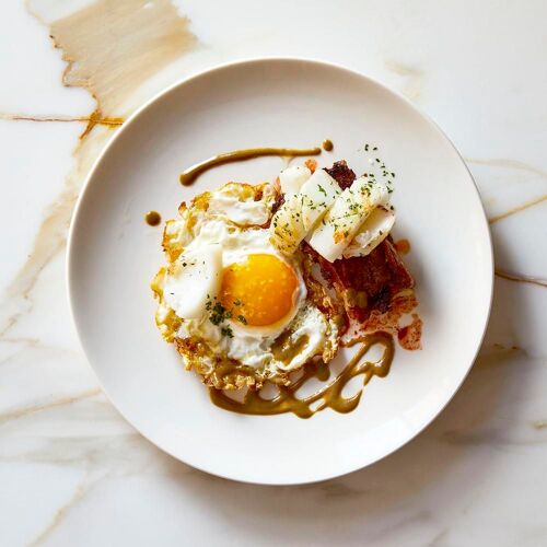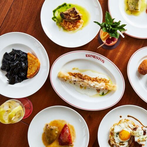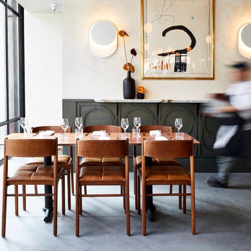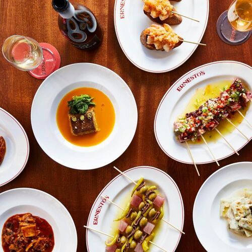 A mound of house-made potato chips layered with thin slices of jamón Ibérico is a fitting start, before piling the table with heartier dishes like meltingly tender tripe slow-braised with tomatoes and morcilla. Then linger over an equally rich grilled squad breast served with rice and mushrooms. The wine list is an impressive tomb of small organic and biodynamic Spanish producers.