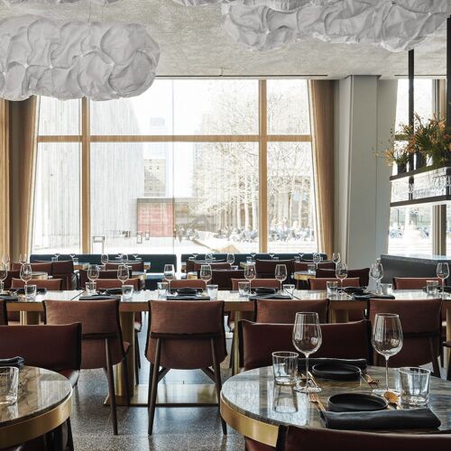 There's pre-theater dining, and then there's Tatiana. Its Lincoln Center location is a natural choice for Philharmonic ticket holders, but it's worthy of applause in its own right. Its stunning interior, crafted by Modellus Novus, swings to a stylish beat courtesy of its good looks and even better looking crowd. Chef Kwame Onwuachi draws on his West African roots and the flavors of his childhood in the Bronx and elsewhere on this menu with signature dishes like egusi dumplings, filled with crab and sea bass in a brick red sauce. The centerpiece—oxtail—arrives in a large pot with two glistening pieces resting in a thick sauce. Marinated for more than a day, and served with Thumbelina carrots and chayote squash along with rice and peas, it's a proper feast.