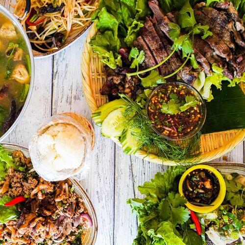 In an explosively colorful dining room that looks more like a children’s ice cream shop, find cooking that is equally vibrant in nature. Elmhurst is rich with talented Thai kitchens, but this one stands out for its fiery Isan-style cooking and prowess with seafood. It would be a mistake to show up without friends – or at least a very serious appetite. Dried shrimp and electric fish sauces are used with abandon on a menu that demands roaming. The house special larb ped udon pulls no punches with duck breast and fried duck skin jolted with fried lime leaves, mint, fried garlic and lime juice. Fried whole fish and bubbling hot pots tempt alongside excellent mainstays like prawn pad Thai and rotisserie chicken marinated in coriander and lemongrass.