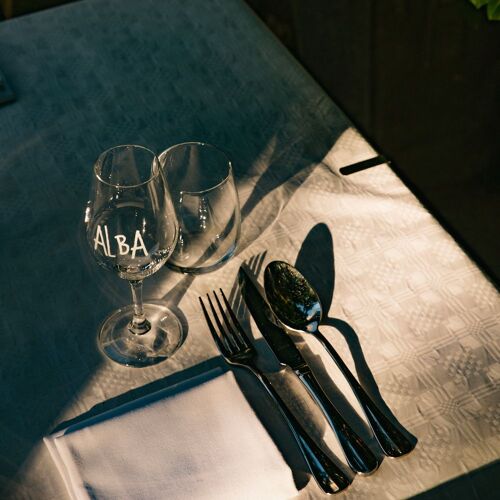 With its funky background music and striking colour scheme, Alba has an arty feel indoors, and boasts a spacious terrace outside. The posters adorning the walls make it clear that they are big on natural wines here. The cuisine is on trend yet down to earth. Imagine a Greek-Dutch fusion dish starring juicy smoked trout gravlax, pops of briny trout roe, and a creamy horseradish sauce that adds a kick to the crème crue. The set menu is a journey of bold flavours and clever combinations. Alba offers a relaxed setting in which to savour delicious food.
