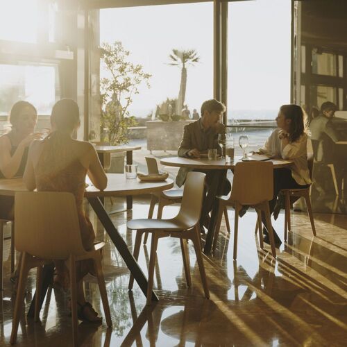 This restaurant, featuring a Nordic-inspired design, pleasant terrace, views of the mouth of the Urumea river and the hallmark of chef Andoni Luis Aduriz, is part of the ever-busy Karsaal congress centre. Here, relaxed unpretentious cuisine and grilled vegetables take centre stage (choose between the à la carte, a tasting menu, and daily specials). We can highly recommend the leeks with a meat emulsion and the grilled monkfish with Ezpeleta butter and carrots (in season only). If you eat at the bar counter you can watch your food being prepared in front of you.