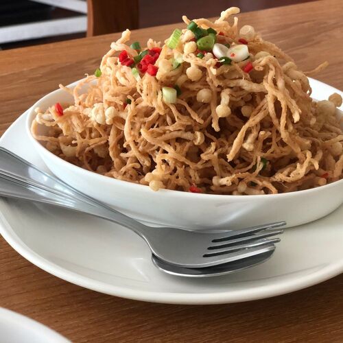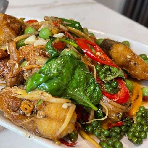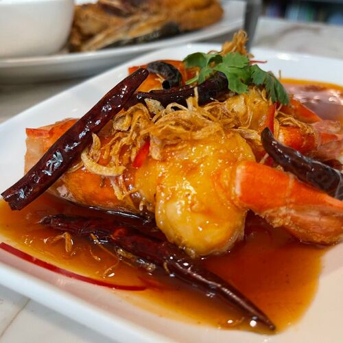 (The restaurant is temporarily closed.) With a whitewashed interior and views of the garden and river, Kaow Laor feels like a modern country home. The Thai menu is replete with grandma's recipes, offering giant river prawns, featherback fish balls and other local river fish. Each dish is expertly cooked and seasoned, and it’s like eating authentic Thai food at home. The imported mackerel with fish sauce is prepared with a light crispy skin, an aromatic fish sauce, deep-fried edible flowers and a spicy dressing.