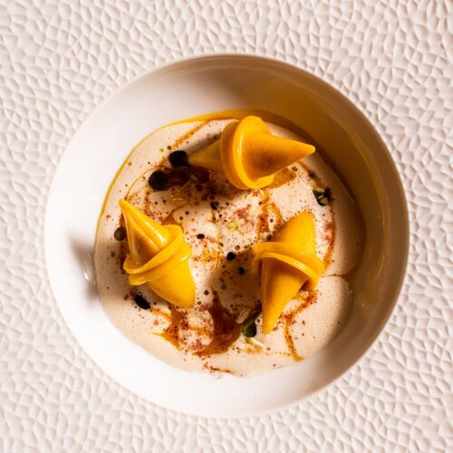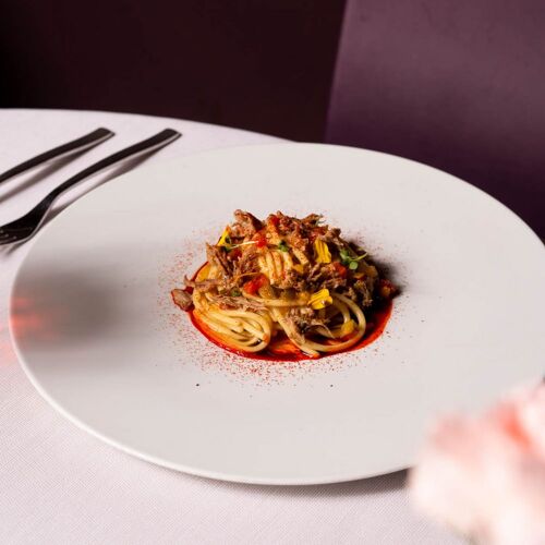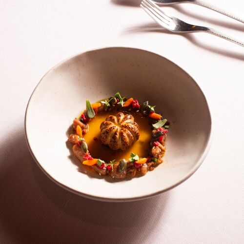 The former nineteenth century refectory of the nearby church has become the laboratory of a chef who is as skillful as he is creative: wrapped in the warm atmosphere of the brickwork of the evocative dining room, all the dishes have fruit as a recurring ingredient, which adds a touch of acidity and flavor to dishes of creative cuisine, whether of meat or fish, further enhanced by the work of an excellent sommelier.