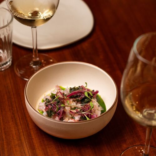 Located along one of the most vibrant streets in the centre of Porto, this restaurant is definitely something to talk about since its chef Pedro Braga is pulling out all the stops in his first solo venture. Its contemporary look, featuring lights dotted across the ceiling and walls, stands out for its combination of green and wood decor, which combines harmoniously with the charming bar to the rear of the dining room. The menu is an ode to Portuguese cuisine with modern, innovative touches, including fresh fish, aged meats, plus a creative array of cocktails. To start, we recommend Mito’s signature mouthwatering matured ox croquettes with a chouriço mayonnaise, followed by a generously portioned 45-day-aged entrecôte steak. To finish, the Rabanada dessert, made with bananas from Madeira, pineapple from the Azores and a hint of citrus toffee is deliciously tempting – it’s hard to imagine a more perfect combination!