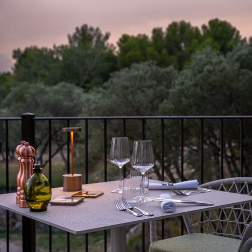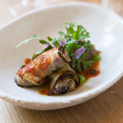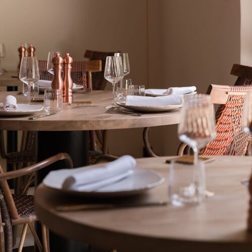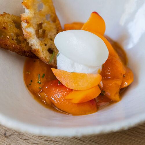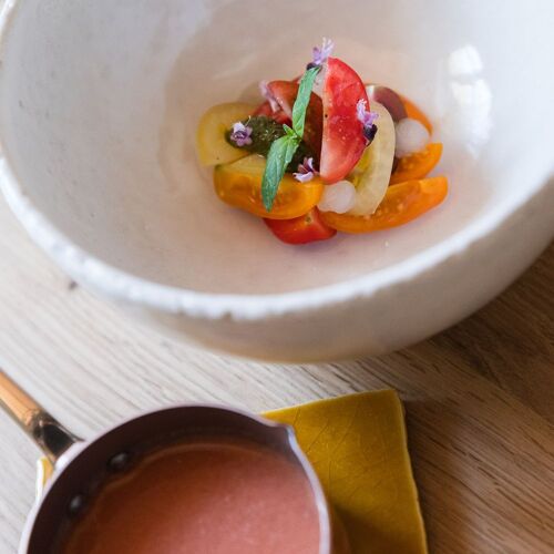 In this luxury hamlet of maisonettes with guestrooms surrounded by olive and almond trees, tables are set out on the terrace in the shade of the plane trees, with the song of the cicadas in the background, and in the inviting dining room where it is nice and cool. Chef Julie Chaix, who has worked at Pic and Ducasse restaurants, prepares a lovely market-fresh menu inspired by the ingredients and traditions of Provence. Diners can indulge themselves with dishes such as pork terrine with bread toasted in meat juices and olive oil from Baux-de-Provence, pan-fried tuna with aubergine and a tomato reduction, and red berry panna cotta. The lunch menu is good value for money.