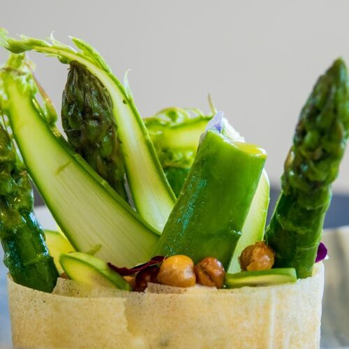In this restaurant near Aix-en-Provence, head chef Nicolas Bottero (previously in Grenoble) serves up exciting, flavoursome and fragrant cuisine. As a child, he used to spend time in the region visiting his grandmother, and has retained an affection for the colours of the South of France and an attachment to the land. You can tell as much from the green asparagus from Mallemort, sautéed à la minute, with creamy morels and a vin jaune emulsion, or the blood oranges on a baba au rhum infused with star anise and a refreshing sorbet. Local farmers are among his suppliers, and a small kitchen garden provides the aromatic herbs. The terrace to the rear of the building overlooks a small garden. Discreet, humble and enthusiastic, Nicolas Bottero gets our vote.