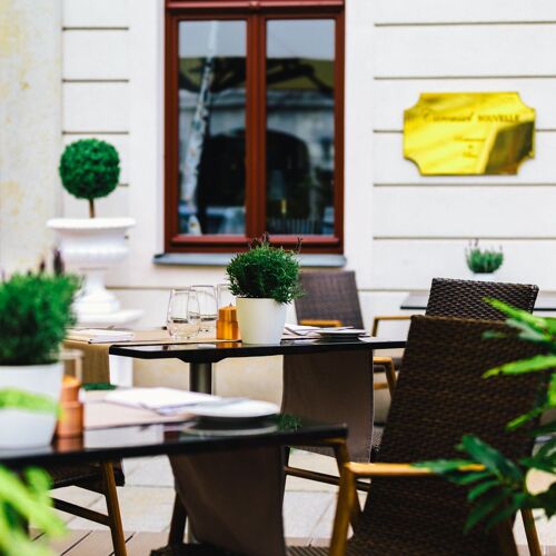 In the attractive Hotel Bülow Palais in Dresden's Baroque quarter, the bistro and winter garden have been combined in the Caroussel Nouvelle, with a stylish interior by star designer Carlo Rampazzi. At lunchtime and in the evening, there is a "Classics" menu, along with two additional tasting menus, one of which is vegetarian, on Tue-Sat evenings. The seasonal dishes are in a classic French vein and inspired by the region. For an aperitif or digestif, head to the Palais Bar and Cigar Lounge.