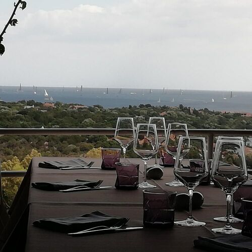 A terrace framed by granite columns overlooks the coast, the sea, and Porto Cervo (about 2 km away): both the culinary style and the overall décor of the welcoming spaces are classic. The menu features primarily seafood, though there are also dishes and flavors from the inland area, with nods to Gallura traditions, such as the strictly handmade chijusoni gnocchetti. Welcoming you is a local family that has been operating here for over 40 years.