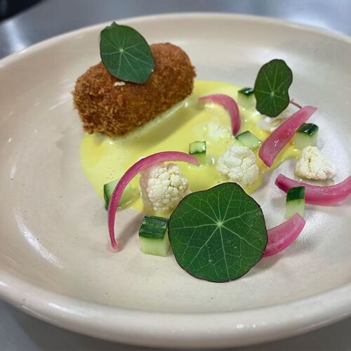 Taller diners may wish to duck their head as they enter this 400-year-old pub, with its low beams being a sign of the building’s characterful touches. Wood and stone floors add to the appeal, while modern furnishings blend in with the historic roots. The choice of menus offers something for everyone, from a tasting option to a good value lunch and an à la carte. Across them all is fresh seasonal produce cooked with care in unfussy preparations so the natural flavours shine through.