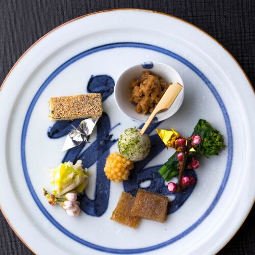 Being originally located in the grounds of Seishoji Temple is why Daigo began serving shojin ryori. What Nomura inherits as the restaurant’s fourth-generation owner is shojin ryori for gracious service. Note that dried bonito flakes are used in the broth, so the meals are not completely vegetarian. The nutrition and flavour of the vegetables and the sukiya architecture put the mind at ease. Relax and enjoy this moment of tranquillity.