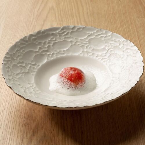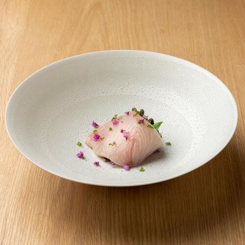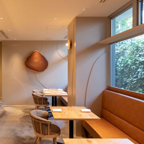 As a boy, Chef Kenichi Nemoto was an enthusiastic angler, and seafood is the focus of the prix fixe menus he arranges. To ensure variety, Nemoto varies his preparation styles: frites, soups, butter roasting, and so on. In gratitude to the natural world of sea and mountain where he encounters his ingredients, he wastes nothing. The chef is earnest in his relations with producers, such as building bonds of trust with the fishermen of Shimoda.