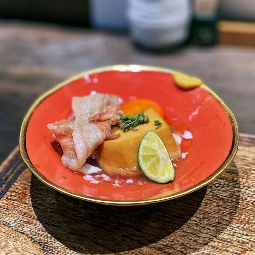 This has been in operation since starting life as a food stall in the postwar years. An old photo on the first floor shows the original sign from those early days. The ‘Tori’ in Torishige reflects an earlier usage, when yakitori referred to pork as well as chicken skewers; ‘shige’ is in honour of the Prime Minister of that time, Shigeru Yoshida. In place of chopsticks, two bamboo skewers are used; meat-stuffed bell peppers are a tradition since the first generation. Beef was added by the second-generation chef; the use of rare cuts is an innovation by the current chef. In era after era, Torishige continues its success story.