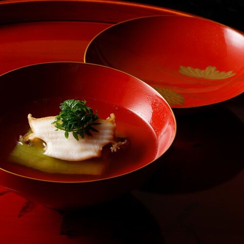 The shopfront lettering sums up this couple’s approach: ‘Enjoy the season’. The proof is in the earnest cooking of the owner-chef and the cheerful disposition of the welcoming proprietress, his wife. Taking a page from his experience as a caterer of chakaiseki (tea ceremony cuisine with its roots in Kyoto), seasonings are both delicious and nutritious. Garnishes and pickled vegetables are inventive, teaching us that true flavour is found in the subtler notes.