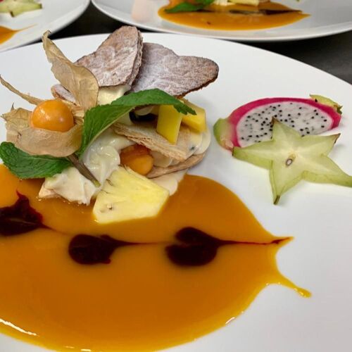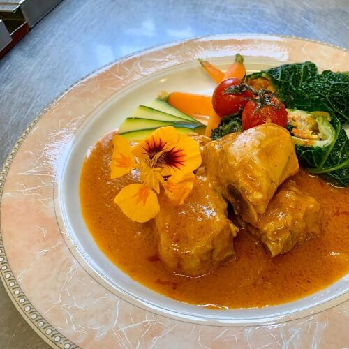 An elegant 17C patrician manor house with smart dining rooms furnished in Regency-style. The fine, classic cuisine is in keeping with its surroundings and changes with the seasons, ensuring that only the freshest ingredients are served.